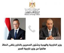 وزير الخارجية والهجرة وشئون المصريين بالخارج يتلقى اتصالاً هاتفياً من وزير الخارجية والتجارة المجري