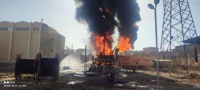 بعد تدخل محافظ أسوان: إخماد حريق بمحطة محولات كهرباء خارج الخدمة بنجع المحطة.. والدفع بسيارة الكيماوى المجهزة بمطار أسوان و 7 سيارات للحماية المدنية .. والمحافظ يأمر بالتحقيق العاجل .. والسكرتير المساعد يشرف على جهود الإطفاء