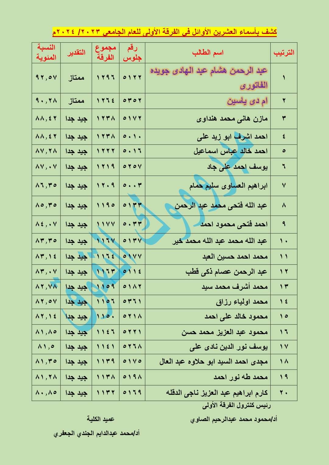 حسبما صرح أد محمد عبد الدايم الجندي عميد كلية الدعوة الاسلامية بالقاهرة واد محمد رمضان وكيل الكلية للشؤون التعليم والطلاب واد محمود الصاوي رئيس ألكنترول فقد تم اعتماد نتيجة الفرقة الأولي بكلية الدعوة الإسلامية للعام الجامعي ٢٠٢٣ / ٢٠٢٤م بنسبة عامة ٦٣% وقد حصل الطالب/ عبد الرحمن هشام عبد الهادي جويدة الفاتوري مصري الجنسية علي المركز الأول بتقدير ممتاز ٩٢،٥٧ % بينما حصل الطالب/ أم دي ياسين بنجلاديشي الجنسية علي المركز الثاني بتقدير ممتاز ٩٠،٢٨% والكلية تتمني لأبنائها جميعا دوام التوفيق والسداد والتفوق