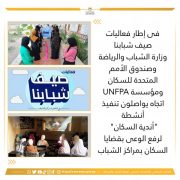 وزارة الشباب والرياضة وصندوق الأمم المتحدة للسكان UNFPA ومؤسسة اتجاه يواصلون تنفيذ أنشطة”أندية السكان ” لرفع الوعى بقضايا السكان بمراكز الشباب
