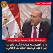 وزير العمل:منحة مجانية للشباب للتدريب على 3 مهن في معهد الساليزيان الإيطالي..