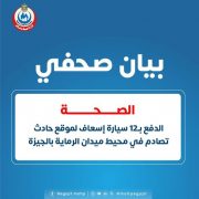 الصحة: الدفع بـ12 سيارة إسعاف لموقع حادث تصادم في محيط ميدان الرماية بالجيزة