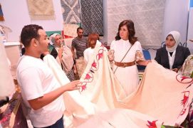 وحرصت السفيرة نبيلة مكرم على الإطلاع على منتجات العارضين المشاركين بالمعرض، فضلا عن تفقدها الأنشطة المنفذة داخل المعرض، مشيدة بما رآته داخل المعرض من منتجات حرفية متنوعة، بالإضافة إلى تنوع الأنشطة وتناغمها، فالمعرض يقدم صورة متكاملة من الأنشطة التي تحث على التمكين الاقتصادي والمشاركة الفعالة والإيجابية للمرأة، كما أنه ينقل ثقافة العمل والتنمية بين الأجيال المختلفة.