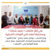 وزارة الشباب : تواصل تنفيذ برنامج ” قادة التغيير ” لإبتكار وتصميم المبادرات المجتمعية بمركز شباب طيبة العوامية في « الأقـصُر »