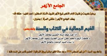 وتأتي الندوة الأولى من البرنامج السادس عشر بعنوان”القيم الجمالية في القرآن والسنة”، ويحاضر فيها كل من؛ د. هبة عوف، أستاذ التفسير بجامعة الأزهر، ود. فاطمة الزهراء محمد محرز، مدرس الحديث وعلوم القرآن بجامعة الأزهر، وتدير الندوة د. سناء السيد، الباحثة بالجامع الأزهر الشريف.