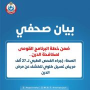 الصحة : إجراء الفحص الطبي لــ 27 ألف مريض غسيل كلوي للكشف عن مرض الدرن