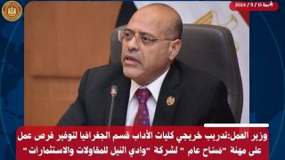 وزير العمل:تدريب خريجي كليات الأداب قسم الجغرافيا لتوفير فرص عمل على مهنة “مَسّاح عام ” لشركة “وادي النيل للمقاولات والاستثمارات”