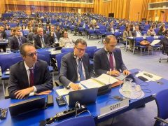 وفي جلسة المؤتمر المنعقدة يوم 19 الجاري ألقى السفير/ محمد نصر مندوب مصر الدائم لدى الوكالة الدولية للطاقة الذرية كلمة عقب انتخاب مصر لعضوية مجلس المحافظين أشار فيها إلى امتنان مصر للثقة التي وضعتها فيها المجموعة الإفريقية بالوكالة للترشح عن المجموعة لعضوية مجلس المحافظين، متعهداً بأن تعمل مصر على الدفع بأولويات القارة الإفريقية فيما يتعلق بعمل الوكالة، وكذا تعزيز دور الوكالة في مجال الأمن والأمان النويين، والدفع بجهود إخلاء منطقة الشرق الأوسط من الأسلحة النووية في ضوء الأولوية التي توليها مصر لهذا الملف لتأثيره المباشر على استقرار وأمن منطقة الشرق الأوسط.