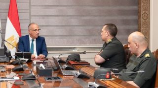 عقد السيد الأستاذ الدكتور/ هانى سويلم وزير الموارد المائية والري إجتماعاً مع السيد اللواء/ محمد مصطفى رضوان مدير عام جهاز مشروعات أراضى القوات المسلحة ، والسيد اللواء/ إبراهيم برهام نائب مدير عام جهاز مشروعات أراضى القوات المسلحة ، وبحضور السيد المهندس/ محمد صالح رئيس مصلحة الرى ، والسيد المهندس/ حسام طاهر رئيس قطاع تطوير وحماية نهر النيل وفرعيه ، والسيد الدكتور/ أحمد مدحت رئيس القطاع المشرف على مكتب الوزير بخصوص التنسيق بين الوزارة والجهاز فى أعمال حماية جوانب نهر النيل ، وإزالة التعديات على مجرى نهر النيل وفرعيه .