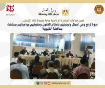 وزارة العمل : ندوة لرفع وعي العمال وتوعيتهم بأحكام القانون وحقوقهم وواجباتهم بمنشآت محافظة القليوبية ..