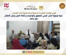 وزارة العمل : ندوة توعوية لنشر الوعي بالحقوق والواجبات وثقافة العمل وعمل الأطفال ببورسعيد .