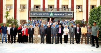 استهل طلاب جامعة الأزهر العام الدراسي الجديد، اليوم الأحد، بتحية الوطن يتقدمهم فضيلة الدكتور سلامة جمعة داود، رئيس الجامعة، والدكتور محمود صديق، نائب رئيس الجامعة للدراسات العليا والبحوث، والدكتور محمد فكري خضر، نائب رئيس الجامعة لفرع البنات، والدكتور رمضان الصاوي، نائب رئيس الجامعة للوجه البحري، والأستاذ محمد قاسم، مدير عام رعاية الطلاب، والدكتورة هبة سعودي، منسق الأنشطة الطلابية لفرع البنات، والدكتور أحمد سامي، منسق الأنشطة الطلابية لفرع البنين، وإدارة التربية العسكرية بالجامعة، ولفيف من عمداء ووكلاء الكليات.