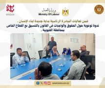 وزارة العمل : ندوة توعوية حول الحقوق والواجبات فى القانون بالتنسيق مع القطاع الخاص بمحافظة القليوبية .