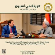 ” وزيرة البيئة تلتقي أمين عام رابطة الجامعات الإسلامية وتبحث سبل التعاون المشترك بين الوزارة والرابطة لنشر وإدراك المفاهيم البيئية في القطاعات المختلفة، ورفع الوعي البيئي سواء داخل مصر أو خارجها”