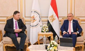 ضمن فعاليات إسبوع القاهرة السابع للمياه .. التقى السيد الأستاذ الدكتور/ هانى سويلم وزير الموارد المائية والرى بالسيد/ ثيودوروس سكيلاكاكيس وزير البيئة والطاقة اليوناني .