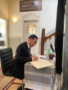 سفير جمهورية مصر العربية في لاهاي يوقع على الدفتر التذكاري الخاص بالأطفال الفلسطينيين ضحايا الاعتداءات الإسرائيلية