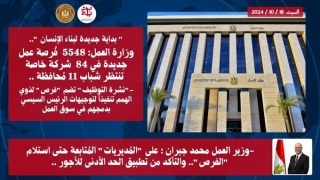 وزارة العمل: 5548 فُرصة عمل جديدة في 84 شركة خاصة تنتظر شباب 11 مُحافظة ..