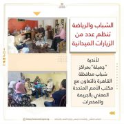 الشباب والرياضة تنظم عدد من الزيارات الميدانية لأندية الفتاة والمرأة بمراكز الشباب بالتعاون مع مكتب الأمم المتحدة المعني بالجريمة والمخدرات