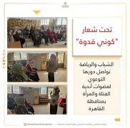 تنفذ وزارة الشباب والرياضة – الإدارة المركزية لتنمية الشباب ، تحت شعار “كوني قدوه “سلسلة من الندوات التثقيفية بأندية الفتاة والمرأة “.