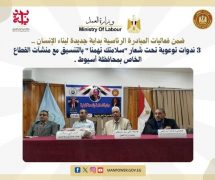 وزارة العمل : 3 ندوات توعوية تحت شعار”سلامتك تهمنا” بالتنسيق مع منشآت القطاع الخاص بمحافظة أسيوط .