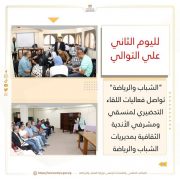 “الشباب والرياضة ” تواصل فعاليات اللقاء التحضيري لمنسقي ومشرفي الأندية الثقافية بمديريات الشباب والرياضة