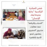 نفذت وزارة الشباب والرياضة من خلال الإدارة المركزية لتنمية الشباب، فعاليات مشروع “المصريون يتعلمون” لمحو الأمية، وذلك ضمن فعاليات مبادرة “بداية جديدة لبناء الإنسان” التي تهدف إلى تنمية المجتمع وتعزيز قدرات الإنسان.