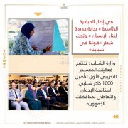 وزارة الشباب : تختتم فعاليات المُعسكر التدريبي الأول لتأهيل 1000 كادر شبابي لمكافحة الإدمان والتعاطي بمحافظات الجمهورية