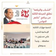 “الشباب والرياضة ” تطلق المرحلة الثالثة من برنامج “تناغم الحواس” لتنمية مهارات الكتابة الإبداعية للنشء علي مستوي ١٥ محافظة … وتبدأ بسوهاج