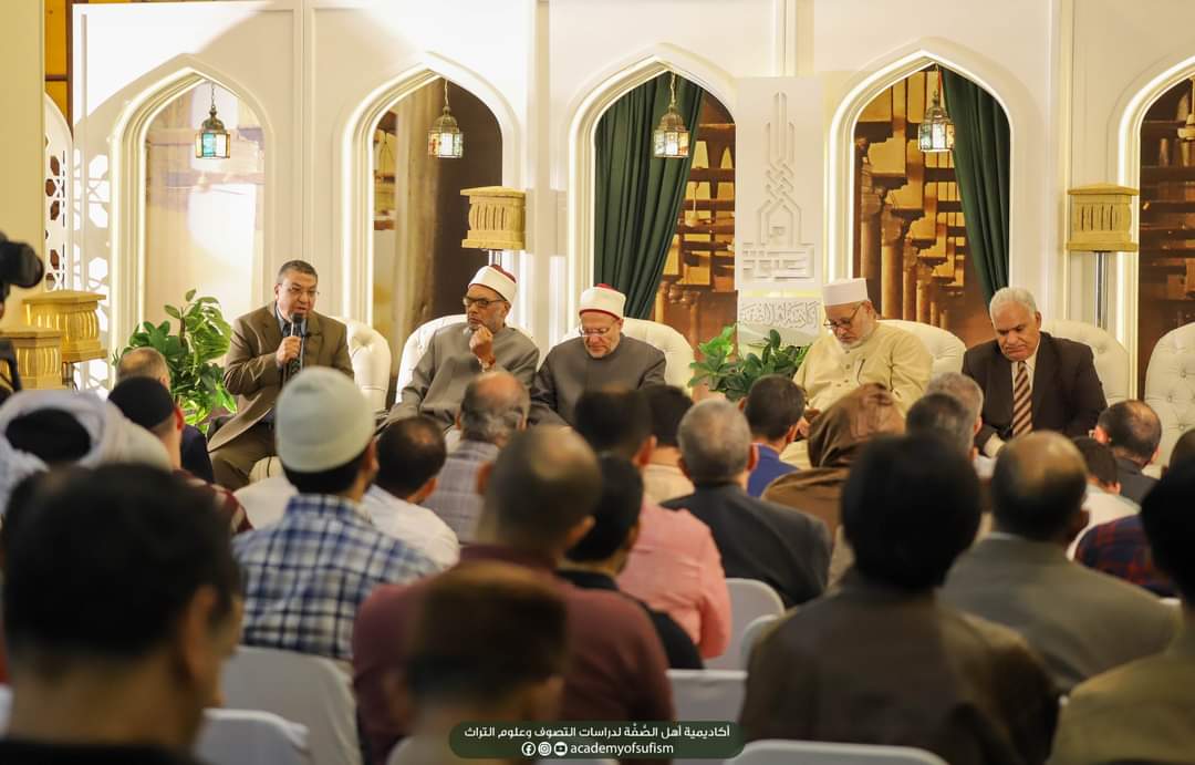 وقدم الدكتور شوقي علام – مفتي الديار المصرية الأسبق الشكر للبيت المحمدي والإمام الرائد الشيخ محمد زكي الدين إبراهيم رحمه الله، والدكتور محمد مهنا أستاذ الشريعة والقانون بجامعة الأزهر الذي يصل الحاضر بالماضي في إحياء التصوف، مؤكدًا أن هذه الأكاديمية موافقة للدعوة الكريمة من السيد الرئيس عبد الفتاح السيسي والدولة المصرية لمبادرة بناء الإنسان، التي جاءت في موطنها الصحيح، لأن البداية لابد أن تكون من بناء الإنسان. وبناء الإنسان استغرق زمنًا طويلا من سيدنا رسول الله صلى الله عليه وسلم في مكة المكرمة متبوعة هذه المرحلة بالمدينة المنورة، هذه البداية تكون بتربية وتنمية الضمير وغرس القيم وتحقيق الرقابة الذاتية للإنسان وهو لا يكون إلا بعمار كامل للقلوب. ولهذا فإن القلب احتل مساحة كبيرة في النص الشرعي من حيث وجوده وتحقيقه على نحو كامل، فهذا الوازع هو الذي ينبغي أن نركز عليه. وفي تقديري أن هذه الدراسة ما بين الأحكام الشرعية والأحكام القلبية هي الأساس الذي ينطلق منه المجتمع. تهذيب النفس، الأخلاق، القيم، التصوف . فإذا تحققنا من ذلك فإننا نكون أمام بناء صحيح للإنسان لا يحتاج إلى رقابة من الخارج إنما يحتاج إلى ضمير داخلي يرى، ويحتاج إلى قلب مستنير بنور الله تعالي ينطلق إلى الإعمار وإلى أداء دوره كخليفة عن الله سبحانه وتعالى.