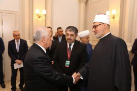 ونقل الوفد المصري تحيات الإمام الأكبر شيخ الأزهر الشريف، مقدمًا الشكر على حفاوة الاستقبال وكرم الضيافة، داعيًا بالنجاح وبالتوفيق لمؤتمر قادة الأديان.