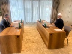 مفتي الجمهورية يلتقي رئيس اللجنة الحكومية للجمعيات الدينية في أذربيجان لبحث تعزيز التعاون الديني والإفتائي