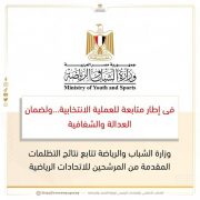 تتابع وزارة الشباب والرياضة نتائج فحص التظلمات الصادرة عن لجنة التظلمات التابعة للجنة الأولمبية المصرية وذلك في عدد من الإتحادات الرياضية في ووفقا للتوقيتات الزمنية المقررة قانوناً وعملاً بكافة الأطر القانونية واللوائح المنظمة للعملية الانتخابية.
