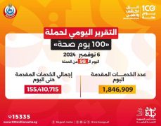 أعلن الدكتور خالد عبدالغفار نائب رئيس مجلس الوزراء ووزير الصحة والسكان، تقديم 155 مليون و410 آلاف و715 خدمة طبية من خلال حملة «100 يوم صحة» منذ إطلاق الدكتور مصطفى مدبولي رئيس مجلس الوزراء، للنسخة الثانية، مساء يوم 31 يوليو 2024، وحتى مساء أمس الأربعاء 6 نوفمبر، وفي إطار مبادرة السيد الرئيس عبدالفتاح السيسي، «بداية جديدة لبناء الإنسان».