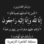 ويتقدم رئيس الإدارة المركزية، وجميع العاملين بمنطقة القاهرة الأزهرية، بخالص التعازي لأهل الفقيدة ومحبيها، سائلين المولى -عز وجلّ- أن يلهم أهلها وذويها الصبر والسلوان، وأن يتغمدها بواسع رحمته، ويسكنها فسيح جناته، ويتقبلها في الشهداء والصالحين، وأن يشفع فيها القرآن الكريم وأن يجعلها شافعا لوالديها ،” إنا لله وإنا إليه راجعون”.