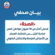 الصحة: فحص أكثر من 16 مليون مواطن ضمن مبادرة الرئيس للكشف المبكر عن الأمراض المزمنة والاعتلال الكلوي