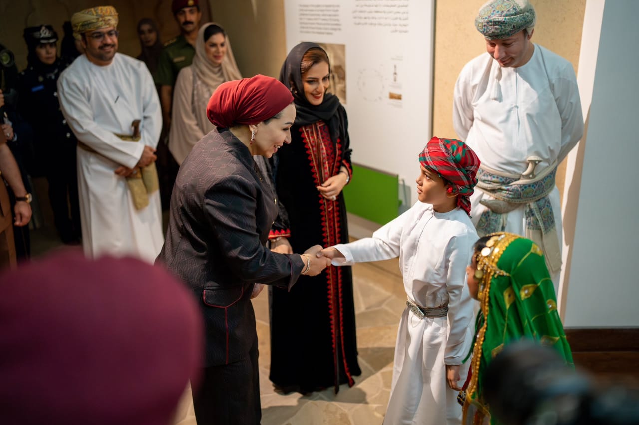 السيدة الجليلة والسيدة حرم فخامة الرئيس المصري تزوران المتحف الوطني وتطّلعان على ما يحتويه المتحف من مقتنيات وآثار تحكي العراقة العُمانية على مر العصور، والمناشط التعليمية التي ينفّذها مركز التعلم بالمتحف والتي تسلط الضوء على العلاقات التاريخية العُمانية المصرية الممتدة من آلاف السنين من خلال تصدير اللبان إلى مصر الفرعونية.