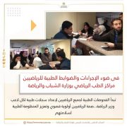 بدأت مراكز الطب الرياضي التابعة لوزارة الشباب والرياضة في اجراء الفحوصات الطبية واعداد الملف الطبى للرياضيين من خلال مراكز ووحدات الطب الرياضي للاعبين في الرياضات المختلفة بمحافظات الجمهورية.