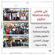 شارك الدكتور أشرف صبحي، وزير الشباب والرياضة، واللواء خالد شعيب محافظ مطروح، في ماراثون للمشي، ضمن برنامج زيارته لمحافظة مطروح لتفقد المنشآت الشبابية والرياضية.