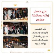 وكان وزير الشباب والرياضة عقب وصوله محافظة مطروح التقي مع أعضاء الهيئة البرلمانية، وتفقد مركز تدريب الكشافة البحرية، والتقي بشباب محافظة مطروح في لقاء حواري بمكتبة مصر العامة، وعقب ذلك افتتح وزير الشباب والرياضةومحافظ مطروح الملعب الخماسي بمركز شباب مطروح وتفقد الأنشطة داخل المركز.