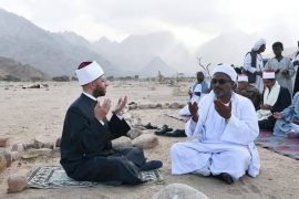 وزير الأوقاف يلتقي أبناء الوطن الكرام في جبل علبة في حلايب ويصلي معهم العصر