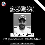 الدكتور خالد عبدالغفار ينعي الزميل خيري ضيف مسئول غرفة الطوارئ بمستشفى مطروح العام.