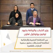 *وزير الشباب والرياضة يشهد توقيع بروتوكول تعاون بين المنظمة المصرية والإماراتية لمكافحة المنشطات بحضور سفيرة الإمارات بالقاهرة*