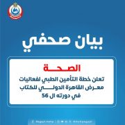 الصحة : تعلن خطة التأمين الطبي لفعاليات معرض القاهرة الدولي للكتاب في دورته ال 56