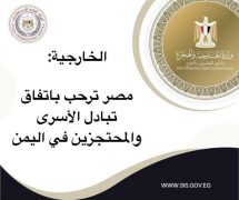 ترحب جمهورية مصر العربية بالاتفاق الذي تم التوصل إليه في العاصمة العُمانية مسقط بشأن تبادل الأسرى والمحتجزين في اليمن