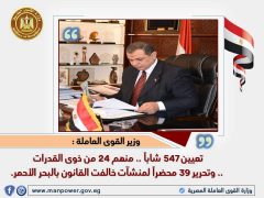 القوى العاملة : تعيين 547 شاباً .. منهم 24 من ذوى القدرات